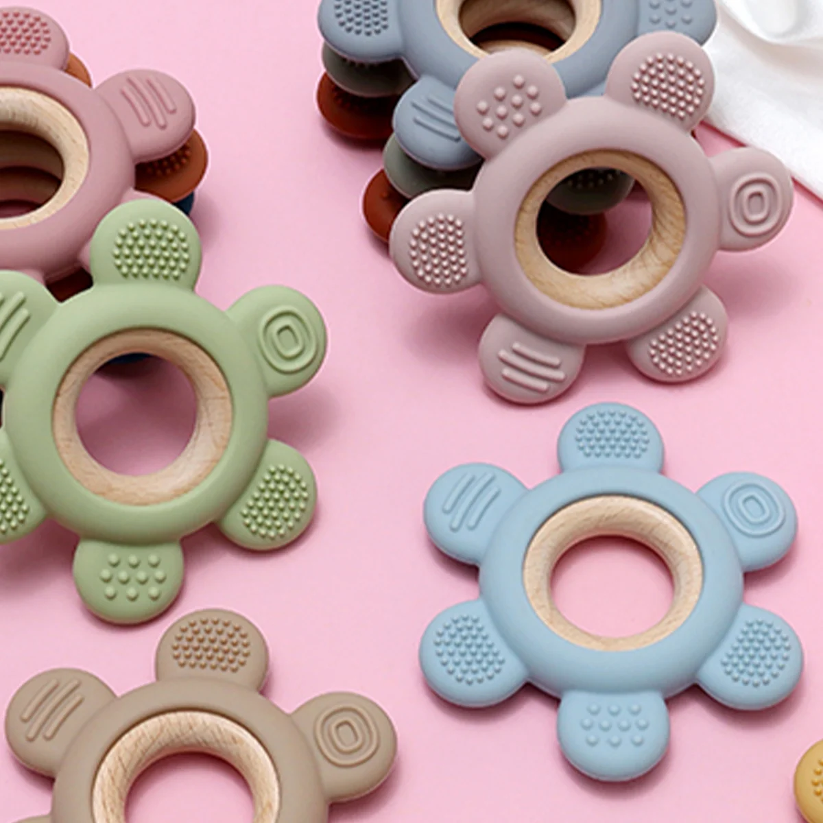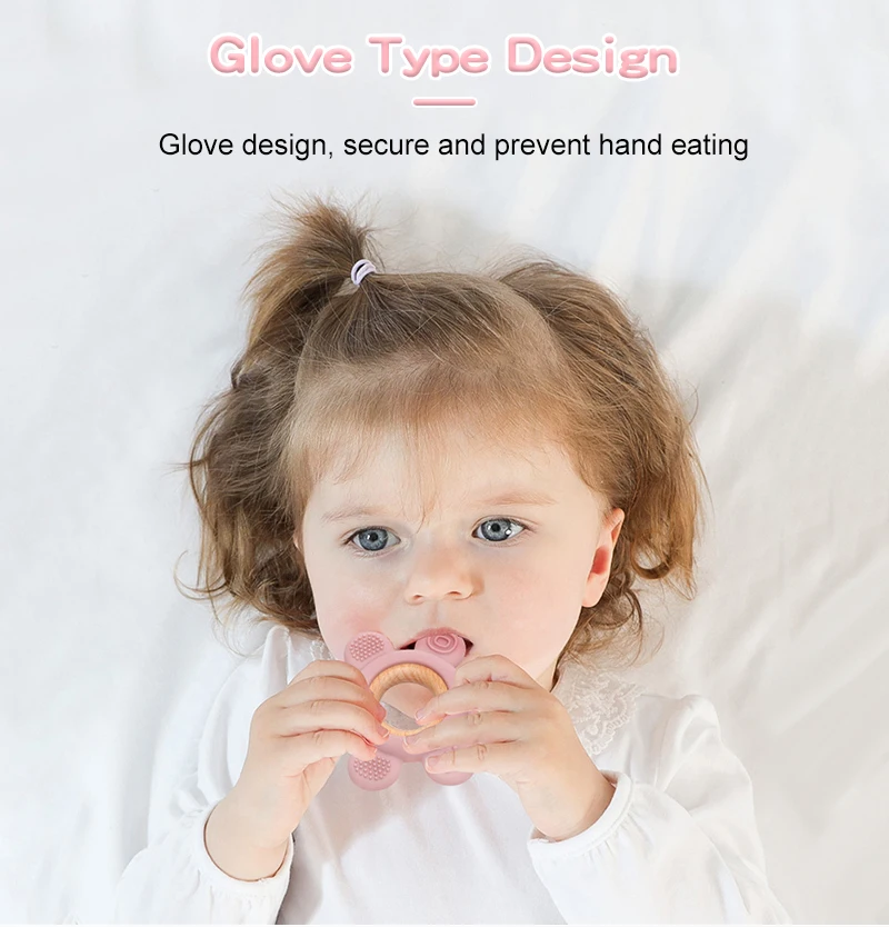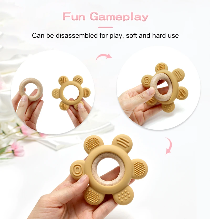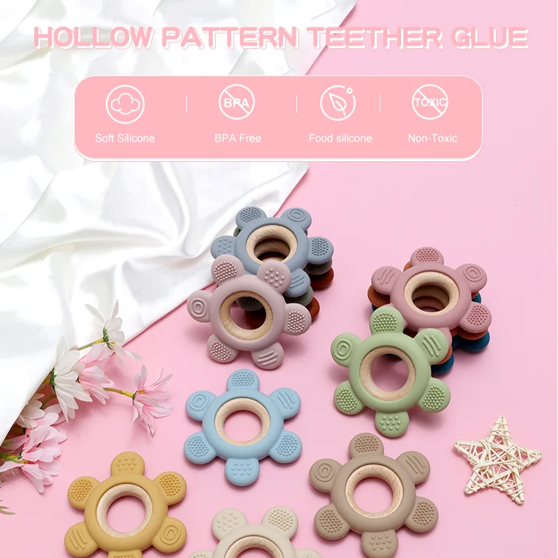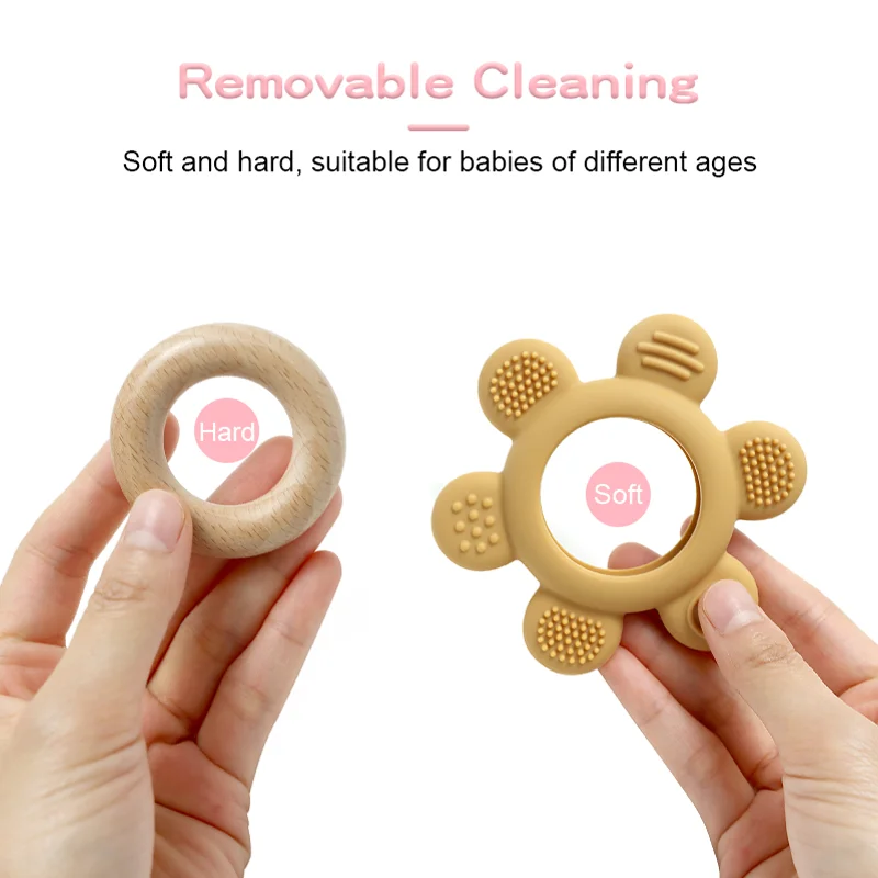 1PC Baby Silicone Teether Toy BPA Free Infant Wooden Ring Health Care Teething Chewing Toys Newborn Gifts For Baby Accessories